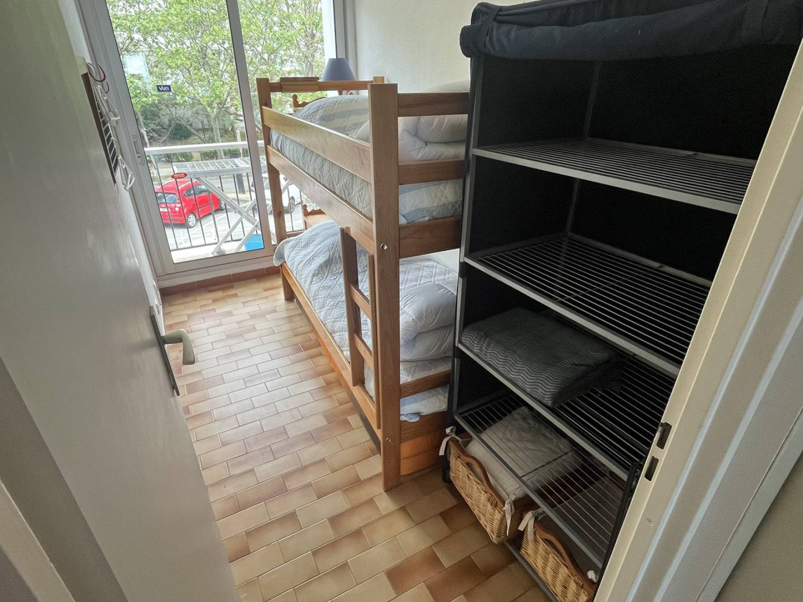 Il dispose de 5 couchages. 2x90 dans une chambre pouvant être réunis + 2x90 lits superposés dans une cabine indépendante + 1x90 dans le séjour.