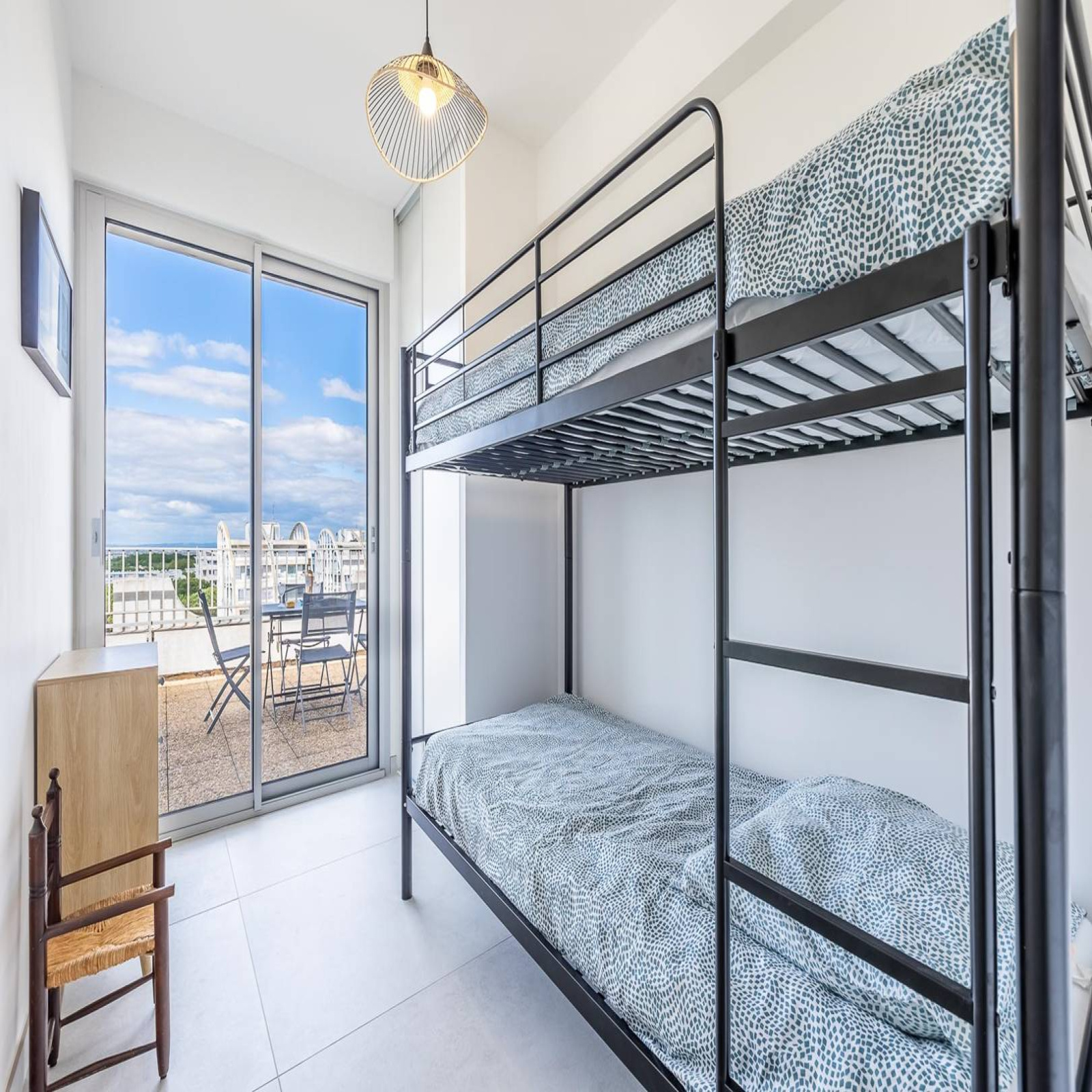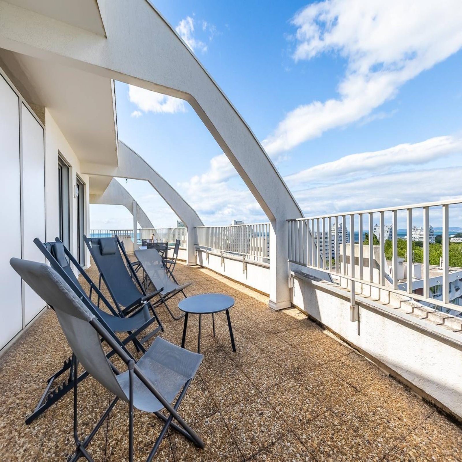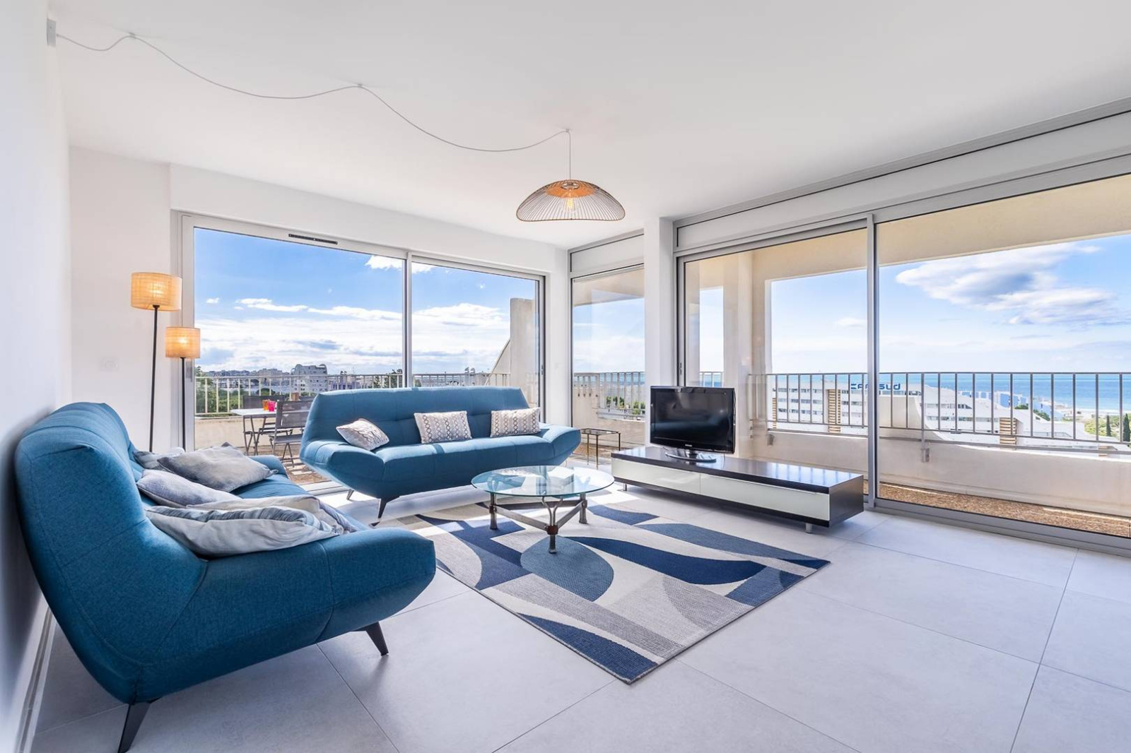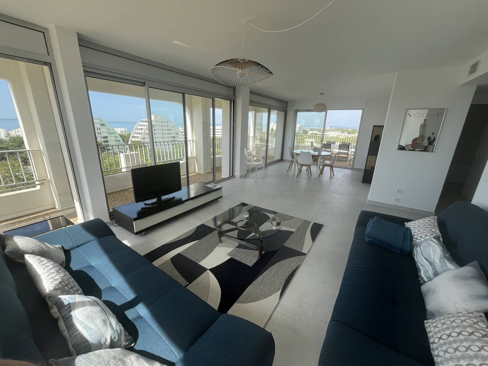 Il possède une terrasse de 100m² avec une vue panoramique exceptionnelle surLa Grande Motte.