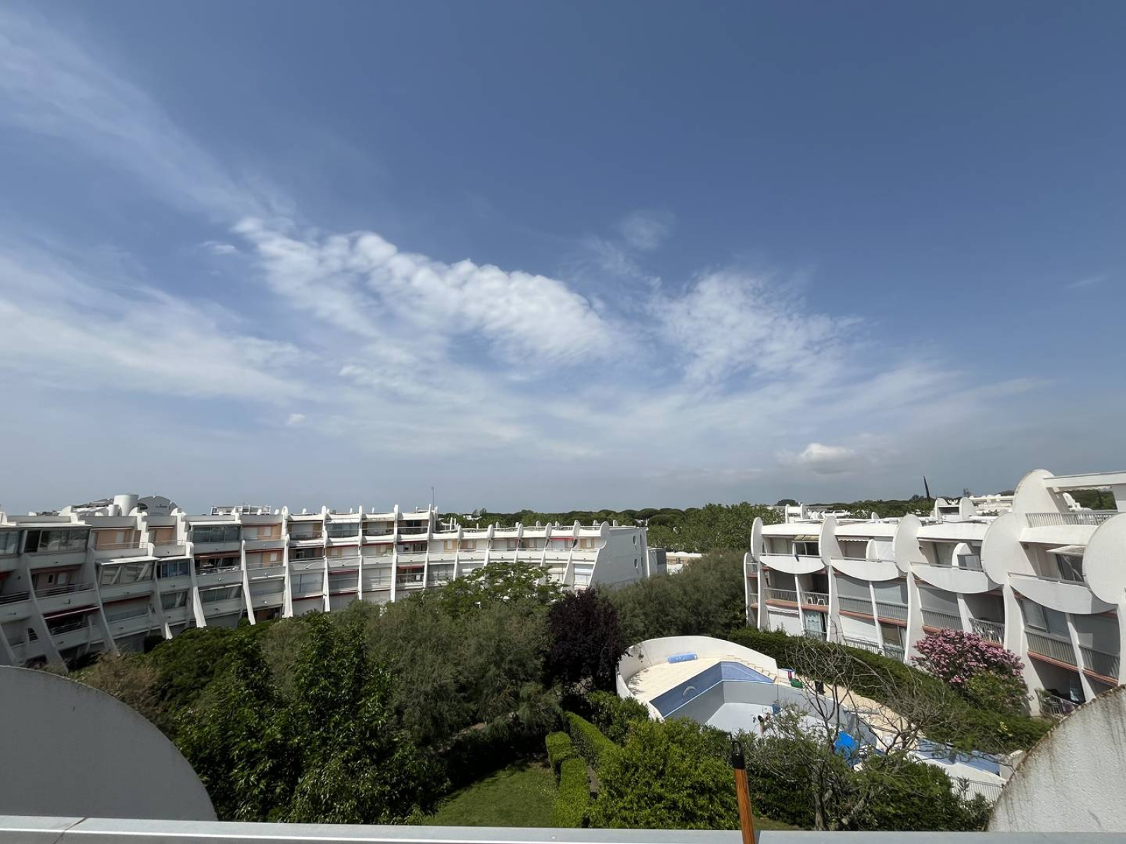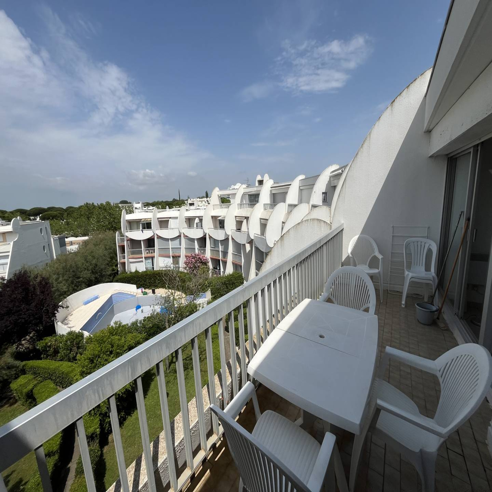 Sa terrasse au dernier étage avec vue piscine et idéale pour passer de bonne vacances.