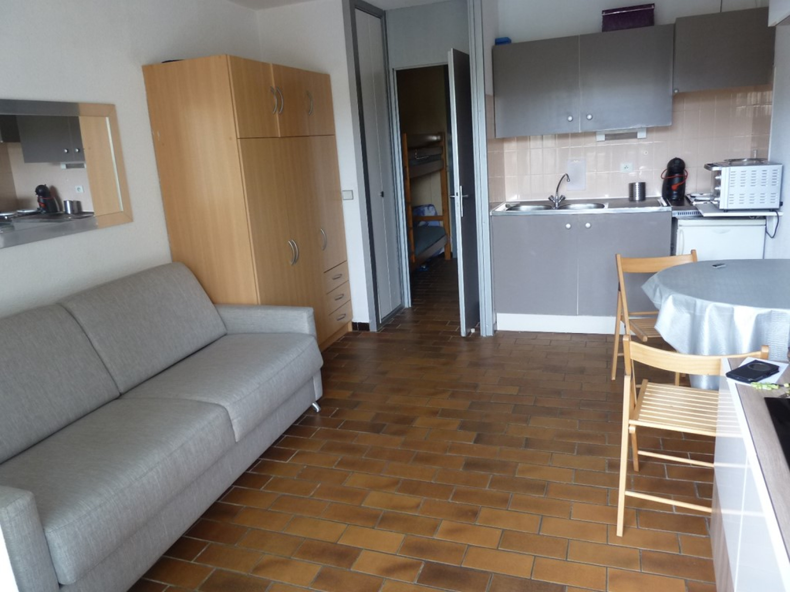 joli studio cabine exposé sud offrant 4 couchages 2x90 dans une cabine + 1x160 dans le séjour. Il est très bien équipé : lave linge, four, micro ondes...