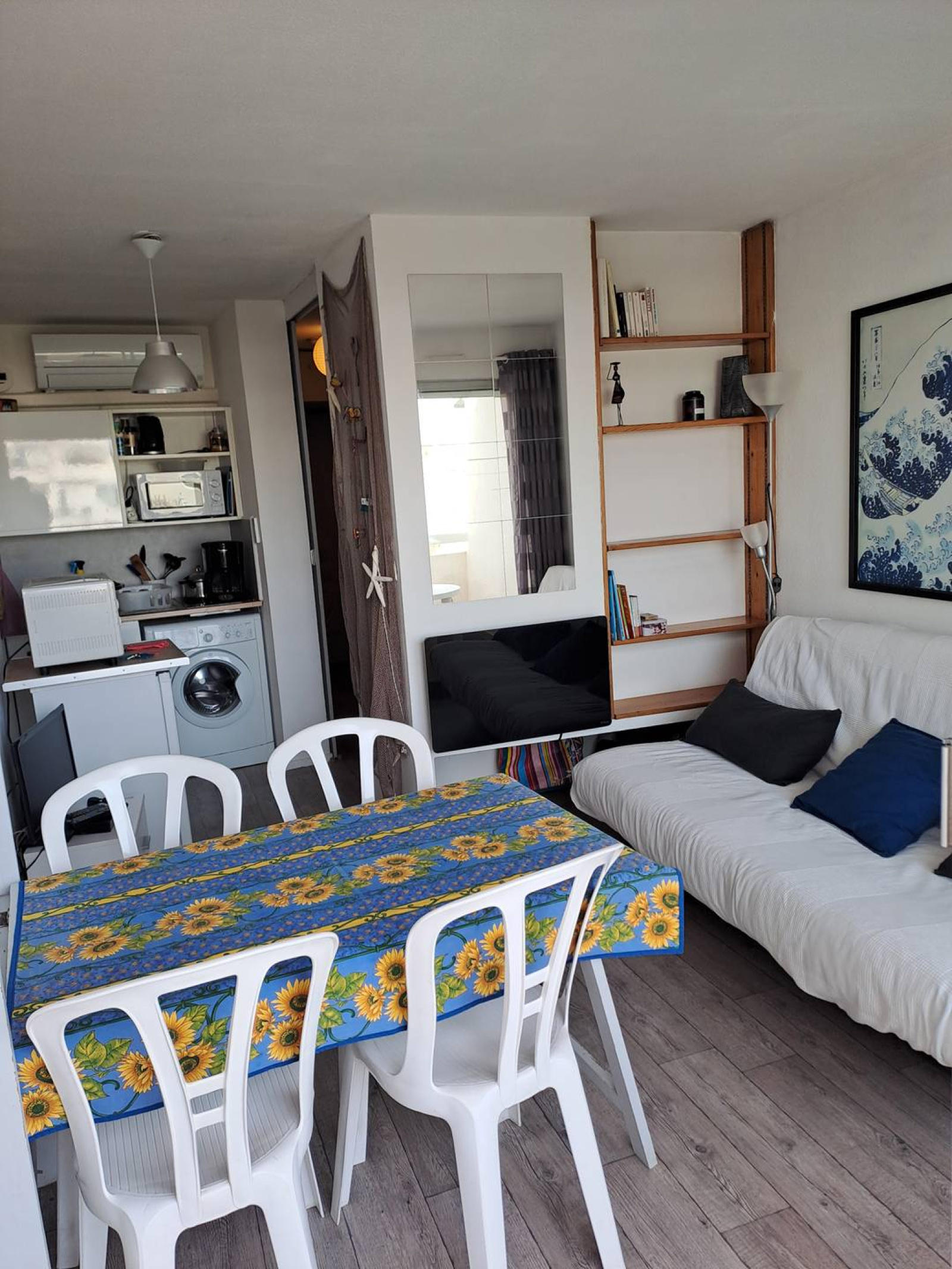 Il est équipé d'un Lave Linge , Frigo top, four, micro ondes et surtout la climatisation.