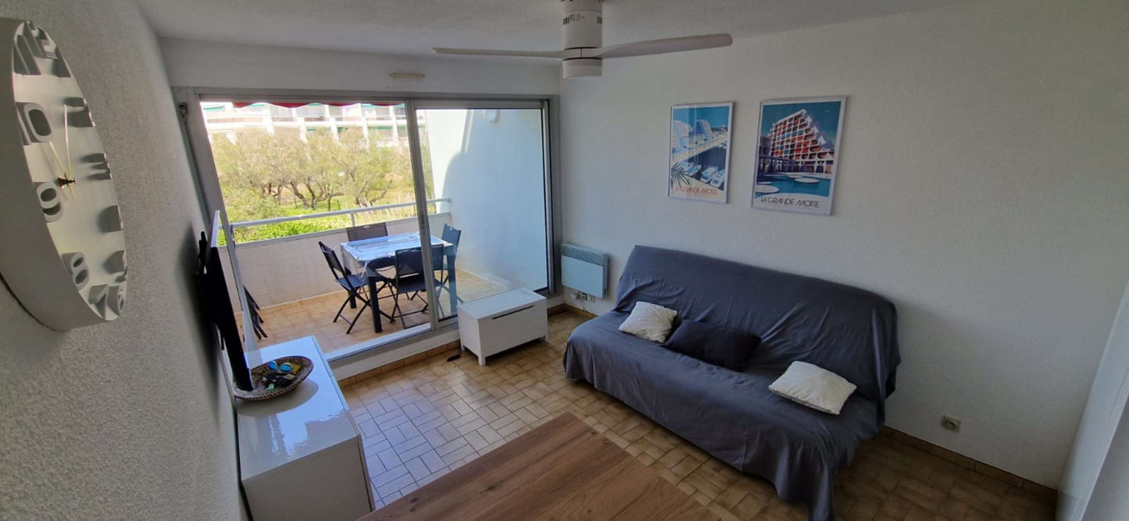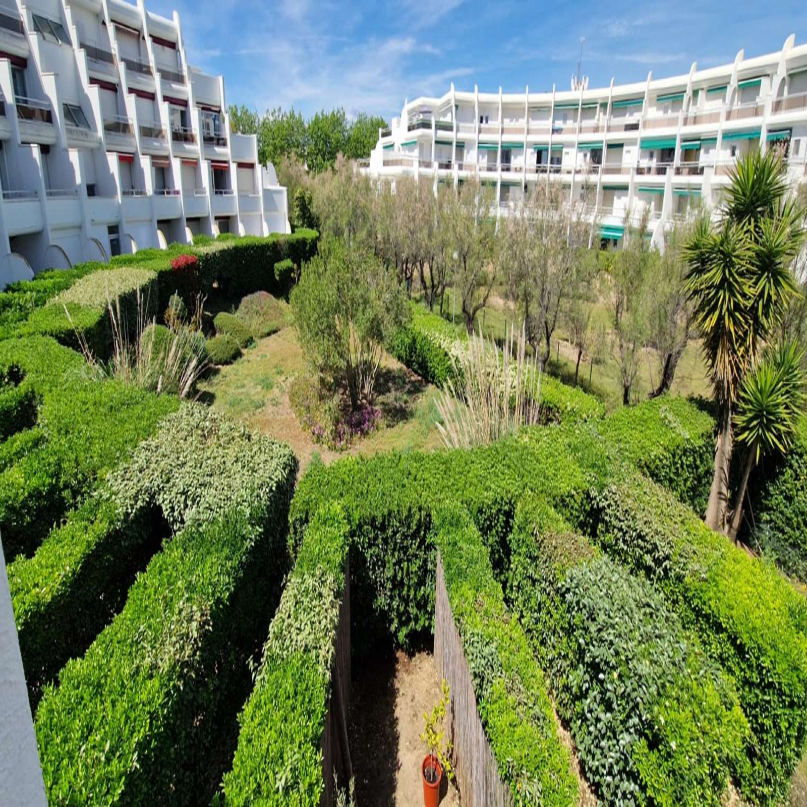 Une terrasse exposée ouest offre une belle vue sur le jardin de la copropriété.