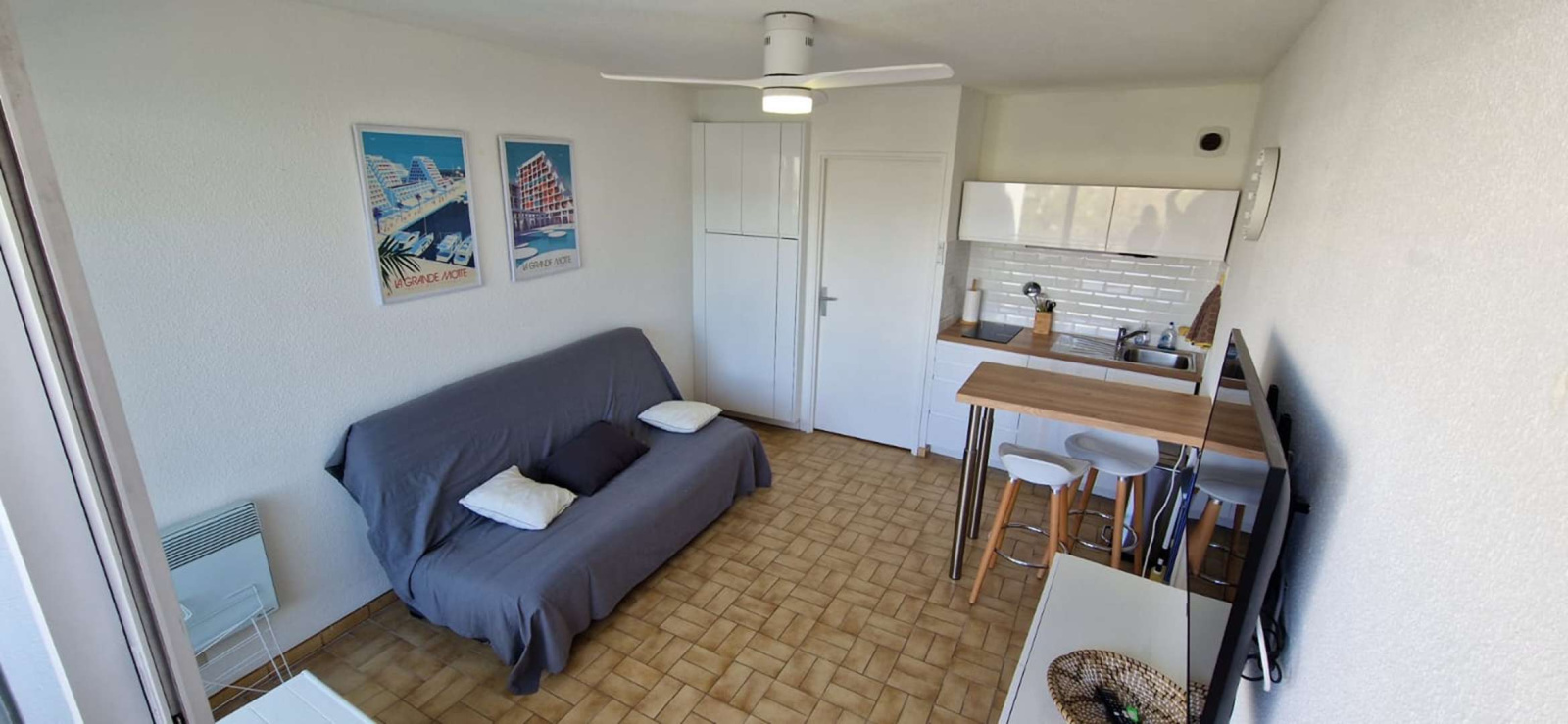La cuisine est équipée d'un grand frigo congélateur, d'un lave vaisselle, de plaques vitrocéramiques et d'un micro ondes. La salle d'eau possède un lave linge.