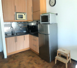 ,studio cabine avec , à 100 m de la plage et juste à coté des commerces,4 couchages(2 lits de 90 et 1 lit de 140) TV .Mico onde