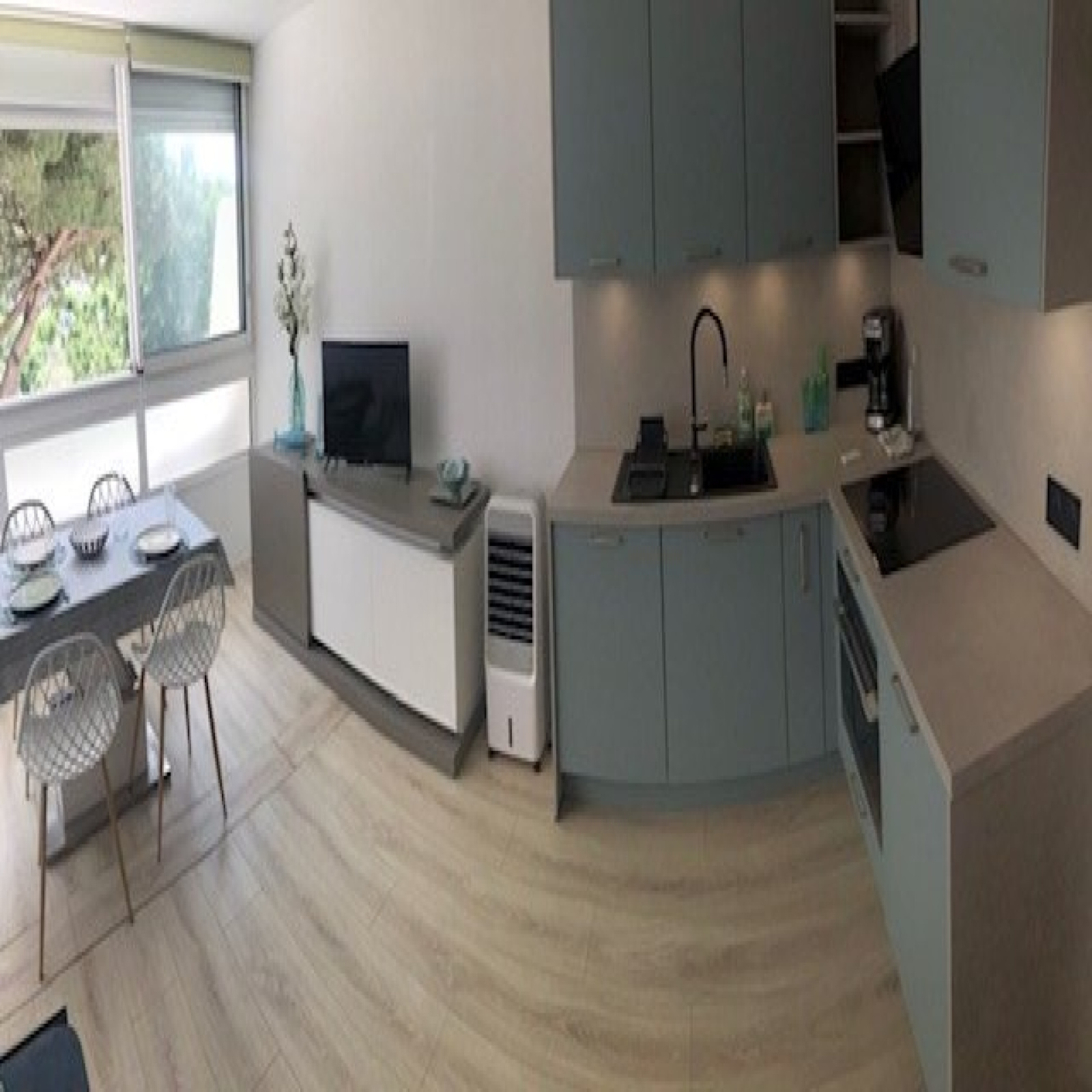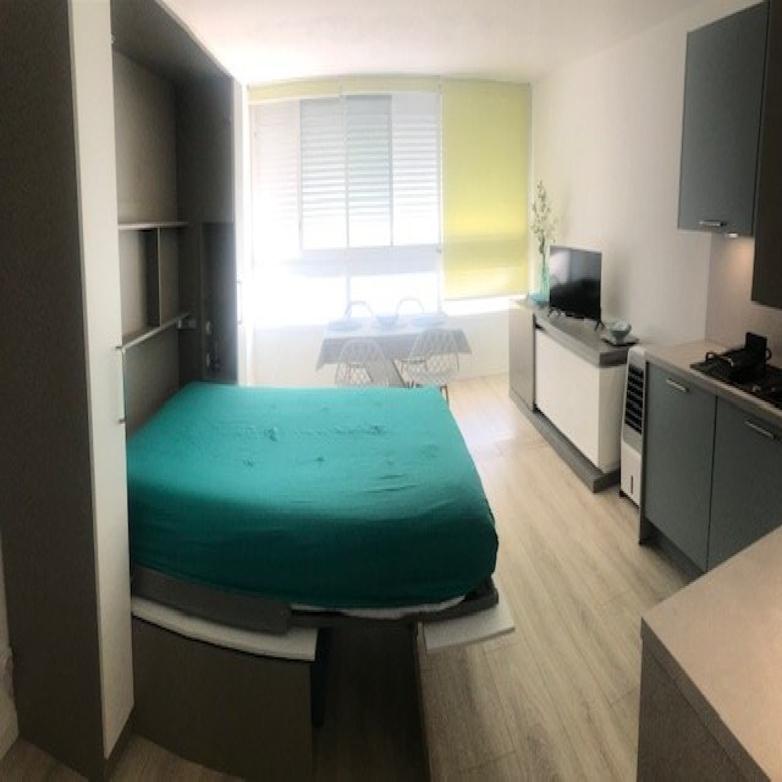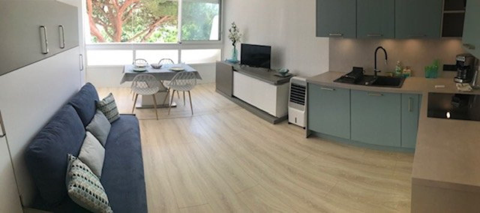Très bien équipé avec lave linge , lave vaisselle , micro onde mini four combiné , plaques vitrocéramiques , grande penderie à l'entrée.