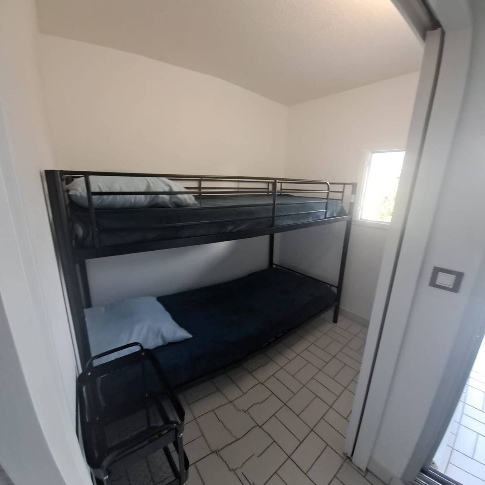 Composé de 4 couchages ( 1 lit en 140 dans séjour + 2 lits superposés en 80 dans cabine séparée)
