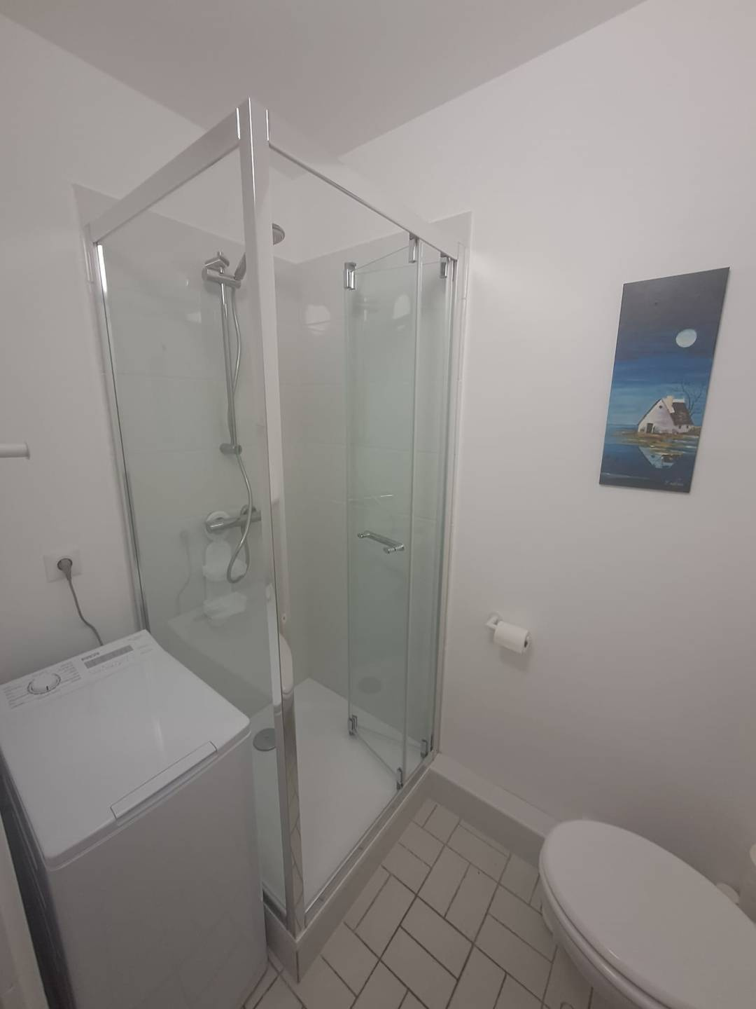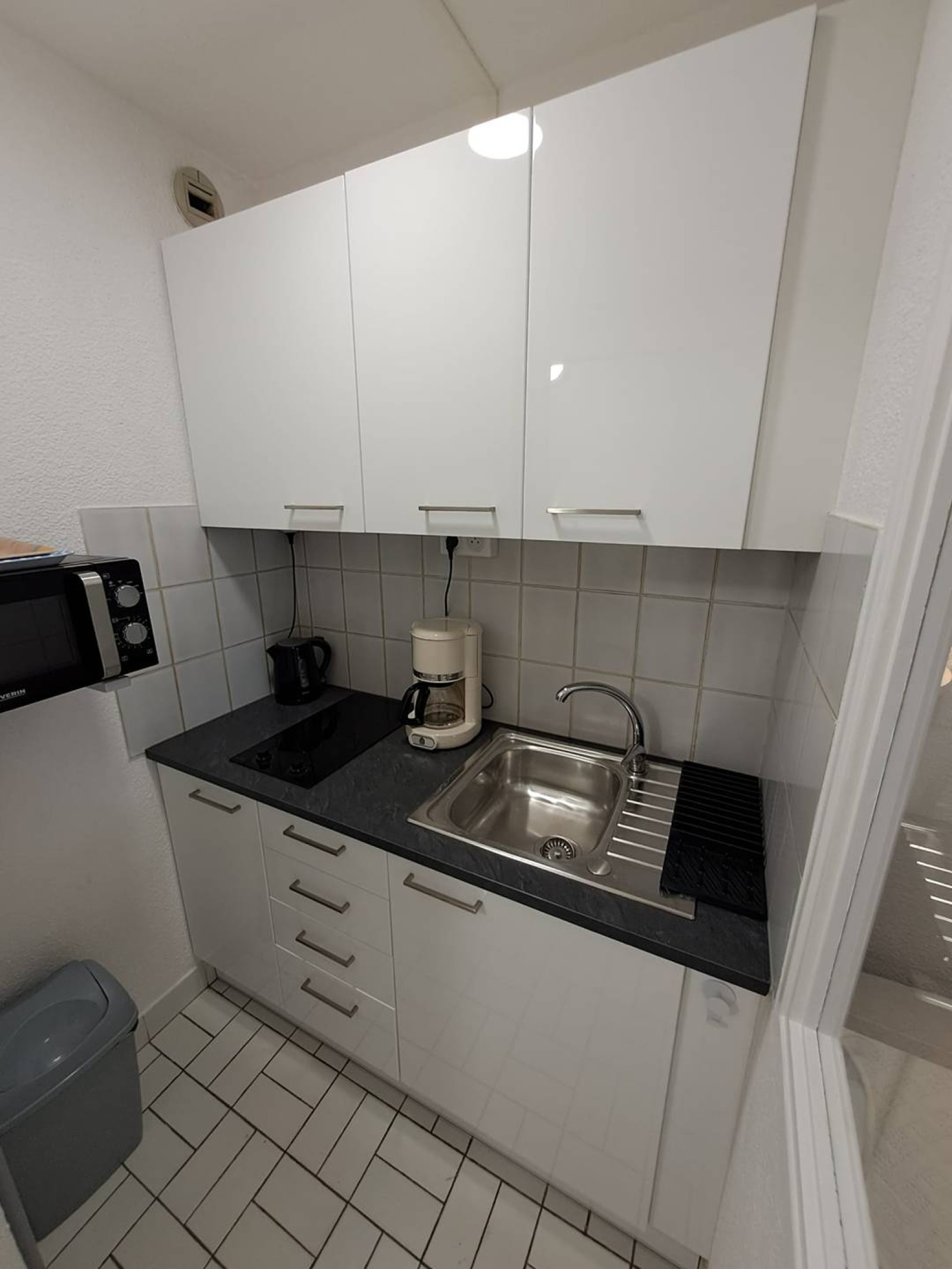 Equipé d'un lave linge , grand frigo congélateur plaque à induction 2 feux , micro onde , cafetière à filtre , bouilloire