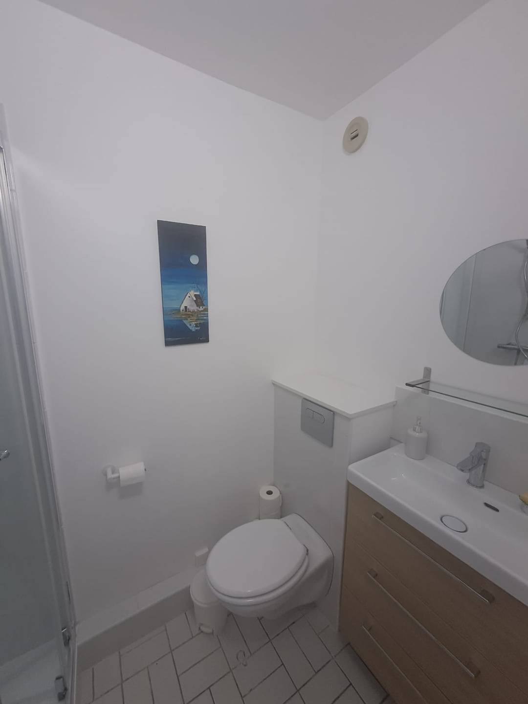salle d'eau avec wc , coin cuisine séparé , séjour , cabine .