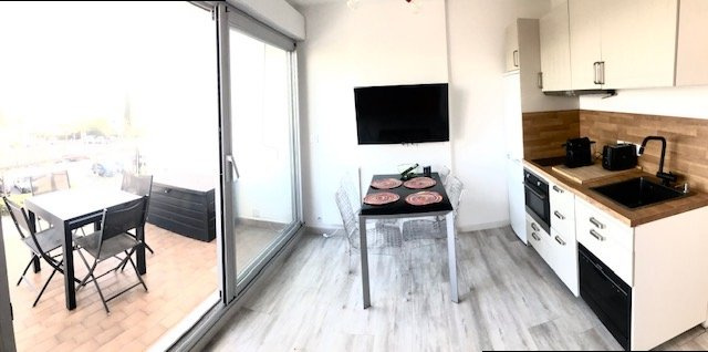 Bien équipé avec WIFI , grand frigo congélateur , plaque vitrocéramique 2 feux , mini lave vaisselle , micro onde mini four combiné , cafetière Nespresso , grille pain