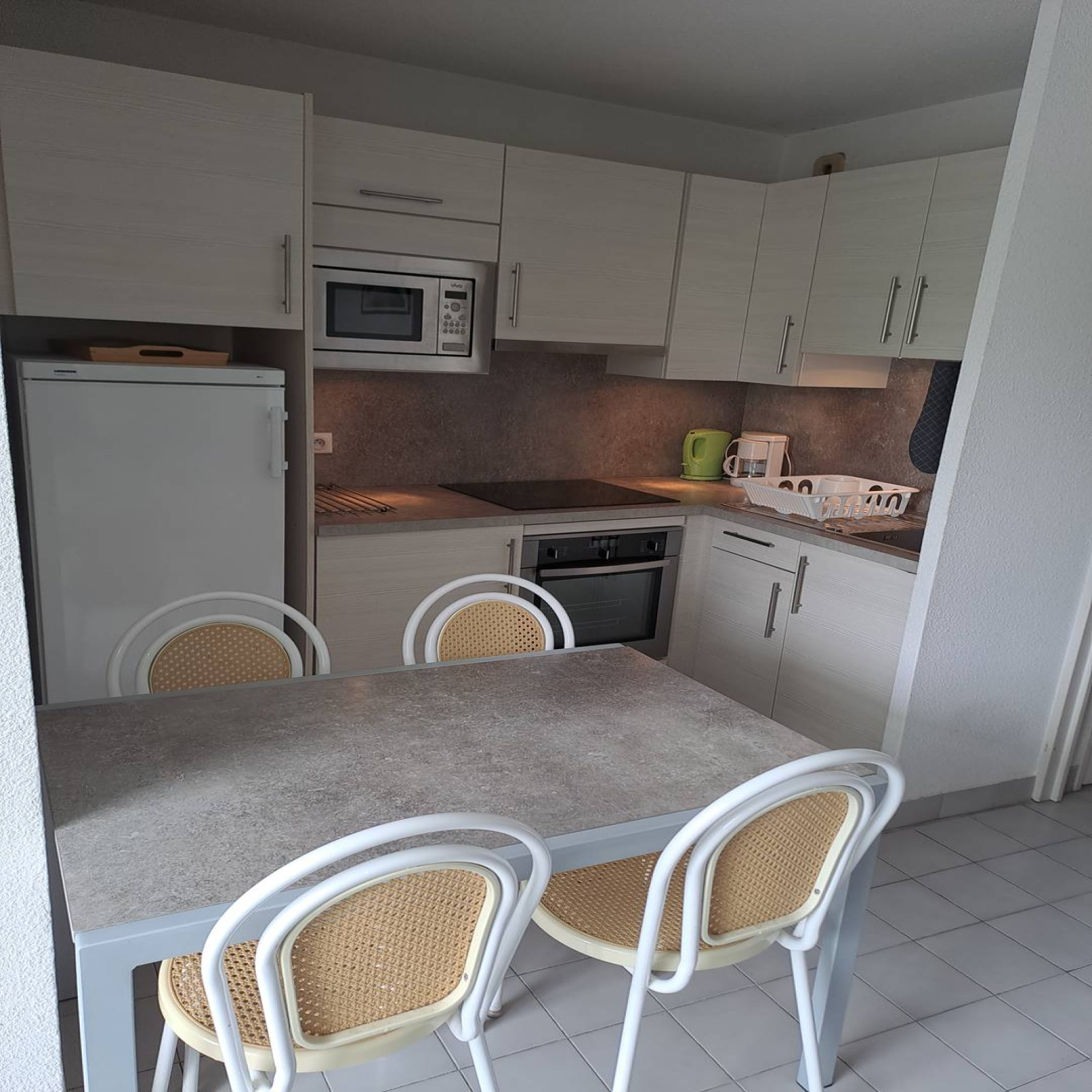 Cuisine équipée d'un grand frigo,four, micro ondes...
