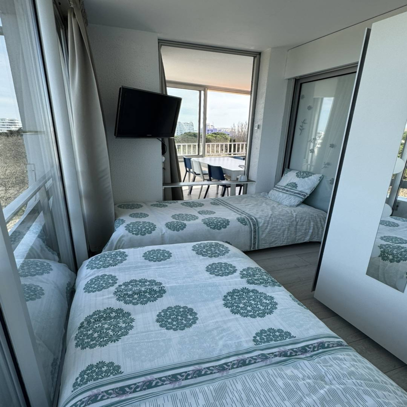 Il dispose de 6 couchages 1 x 160 dans une chambre : 2x 80 +1x160 un canapé convertible dans le séjour. + 2x90 dans une seconde chambre.