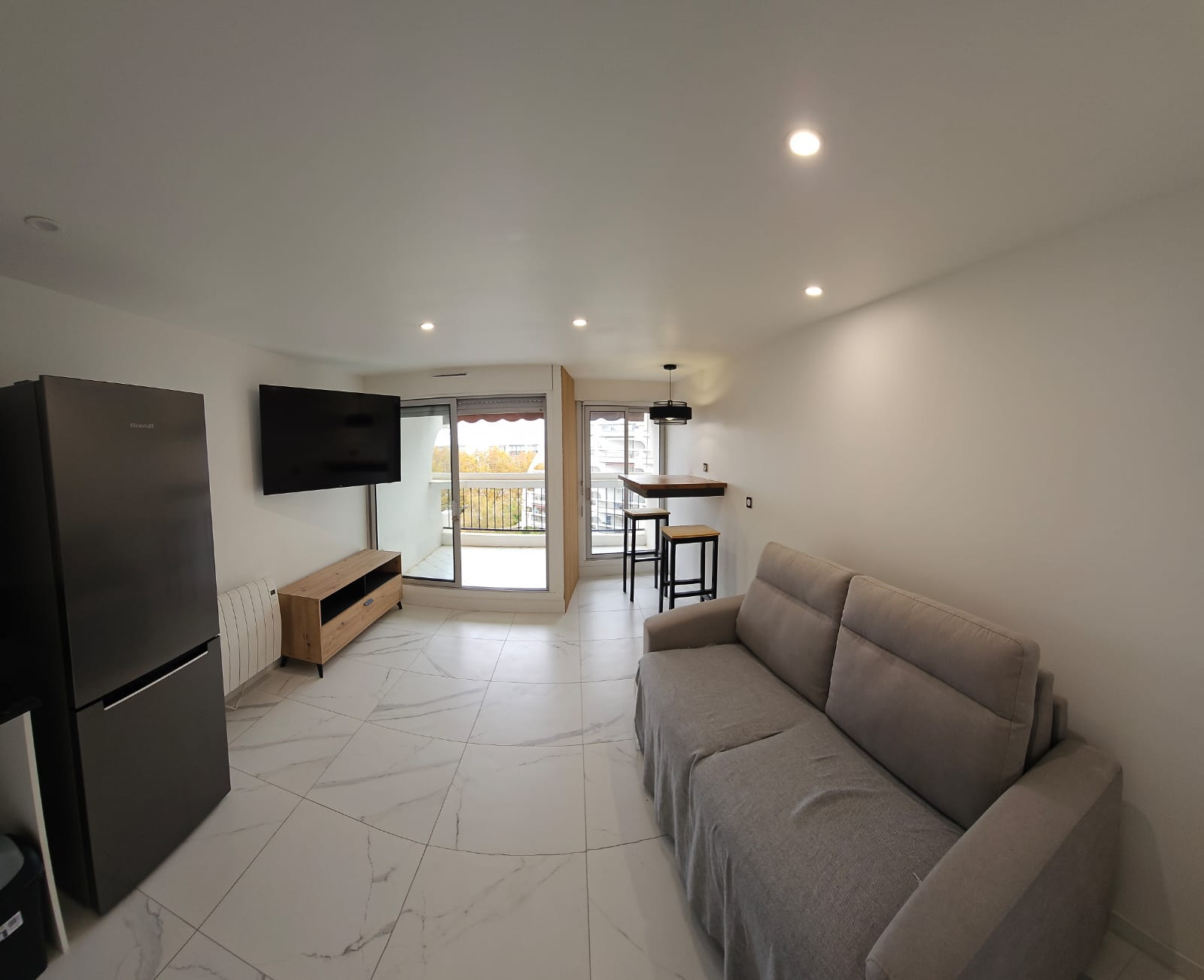Motte du couchant ,dans résidence sécurisée avec faibles charges à 150 m de la plage et à proximité des commerces , en étage élevé avec jolie vue ,superbe studio cabine de 26 m² environ transformé en studio , entièrement rénové du sol au plafond . Composé d'un cellier avec ballon d'eau chaude , d' une salle d'eau , WC indépendant , grande pièce à vivre avec coin cuisine , terrasse orientée sud ouest de 7 m² environ . Place de parking privative .