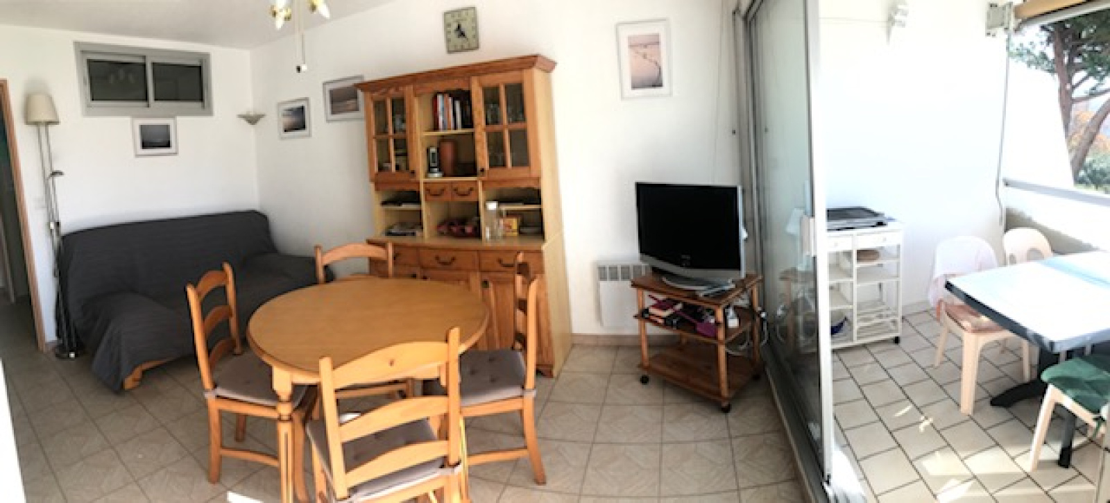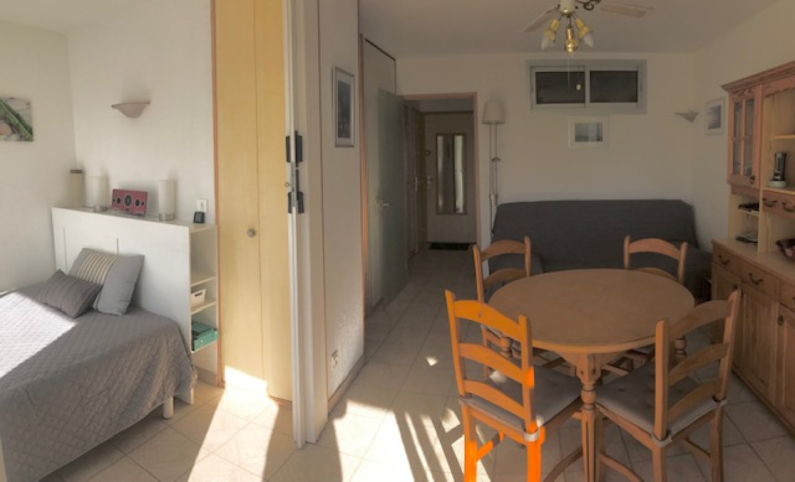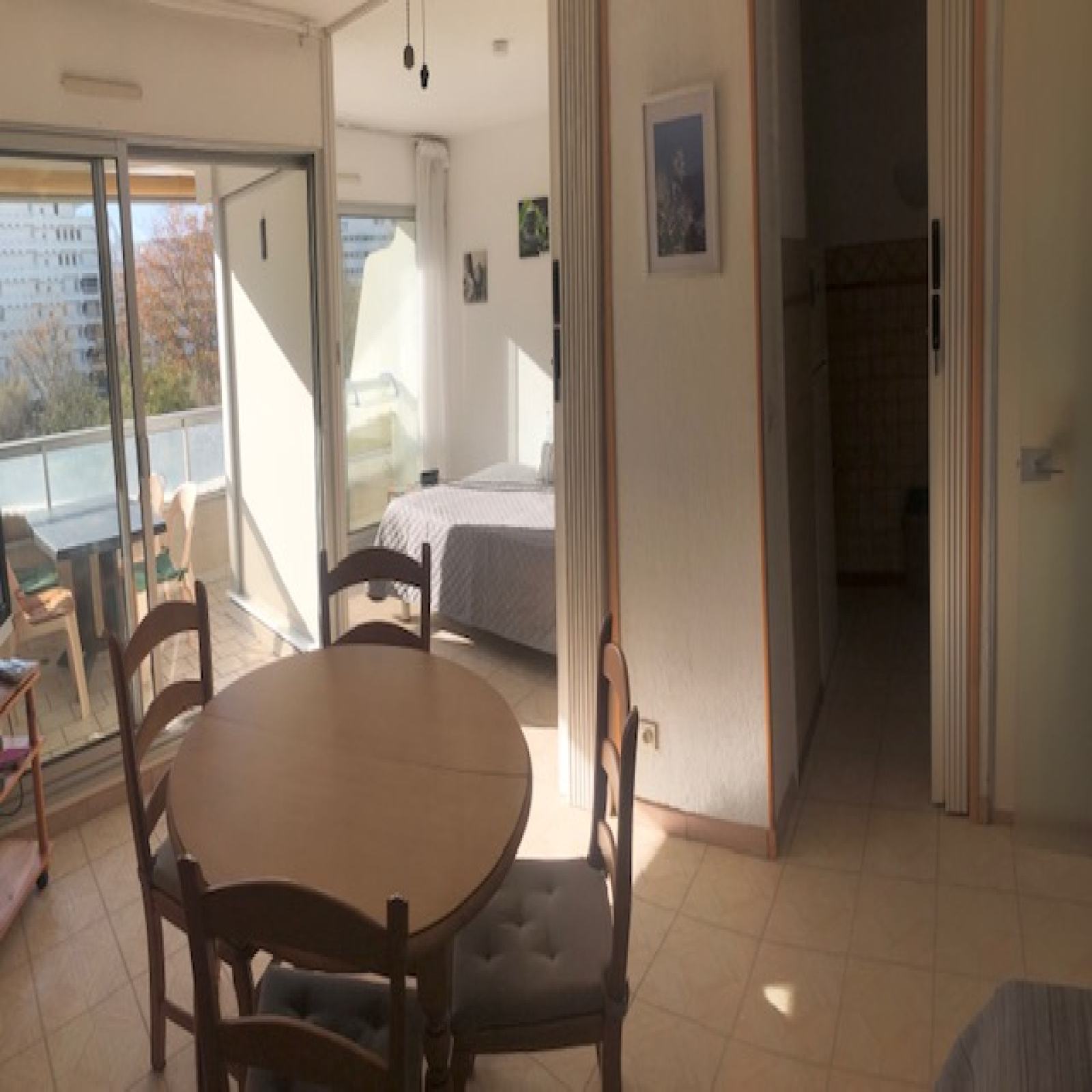 Secteur du couchant , dans résidence avec piscine , 2 pièces cabine de 33 m² environ orienté sud vendu avec garage et parking . composé d'une salle de bain et WC séparés , confortable cabine à l'entrée , séjour avec coin cuisine séparée , chambre . Loggia de 6 m² environ . La résidence est sécurisée , à 300 m de la plage , parc à proximité , commerces saisonnier et grande surface proches. Idéal pour de la location saisonnière .