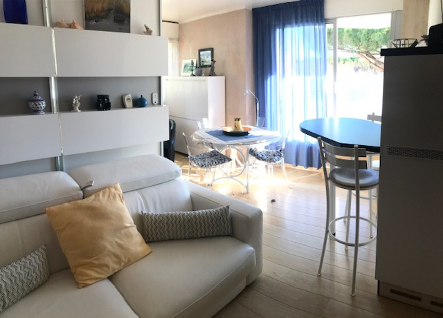 exclusivité , secteur du couchant , dans résidence de standing à 300 m de la plage ,appartement rénové de 32 m² habitable avec sa superbe terrasse de 40 m² orienté sud est . Composé d 'une salle d'eau et wc séparés , dressing à l'entrée ,pièce à vivre avec coin cuisine et coin nuit ,confortable terrasse sans vis à vis et bien orientée . Volets électrique , climatisation . Place de parking et cellier . Ce bien se situe à 300 m de la plage , commerces et transport en commun à proximité , parc .