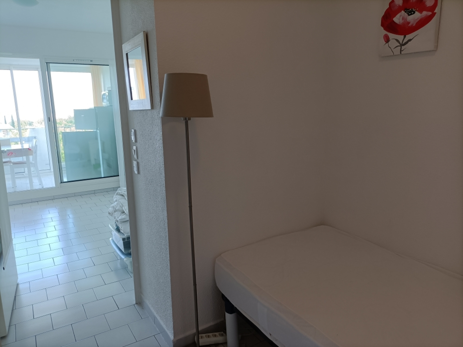 Motte du couchant , dans résidence sécurisée avec piscine à 300 m de la plage , studio cabine en étage élevé , orienté sud avec une belle vue dégagée . En parfait état cet appartement très lumineux de 30 m² habitable environ est composé d'un coin cabine à l'entrée avec possibilité de 2 lits superposés ou dressing , salle de bain avec wc , pièce à vivre avec coin cuisine , loggia vitrée de 9 m². Situé dans une résidence bien entretenue , à proximité des commerces et des transports en commun , il est idéal pour de la location saisonnière.