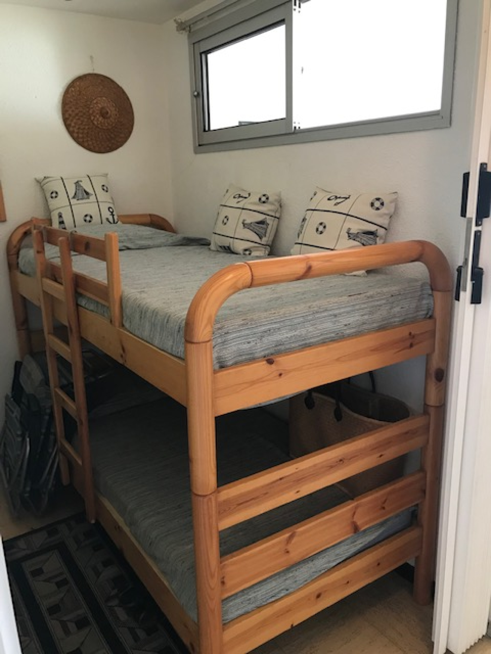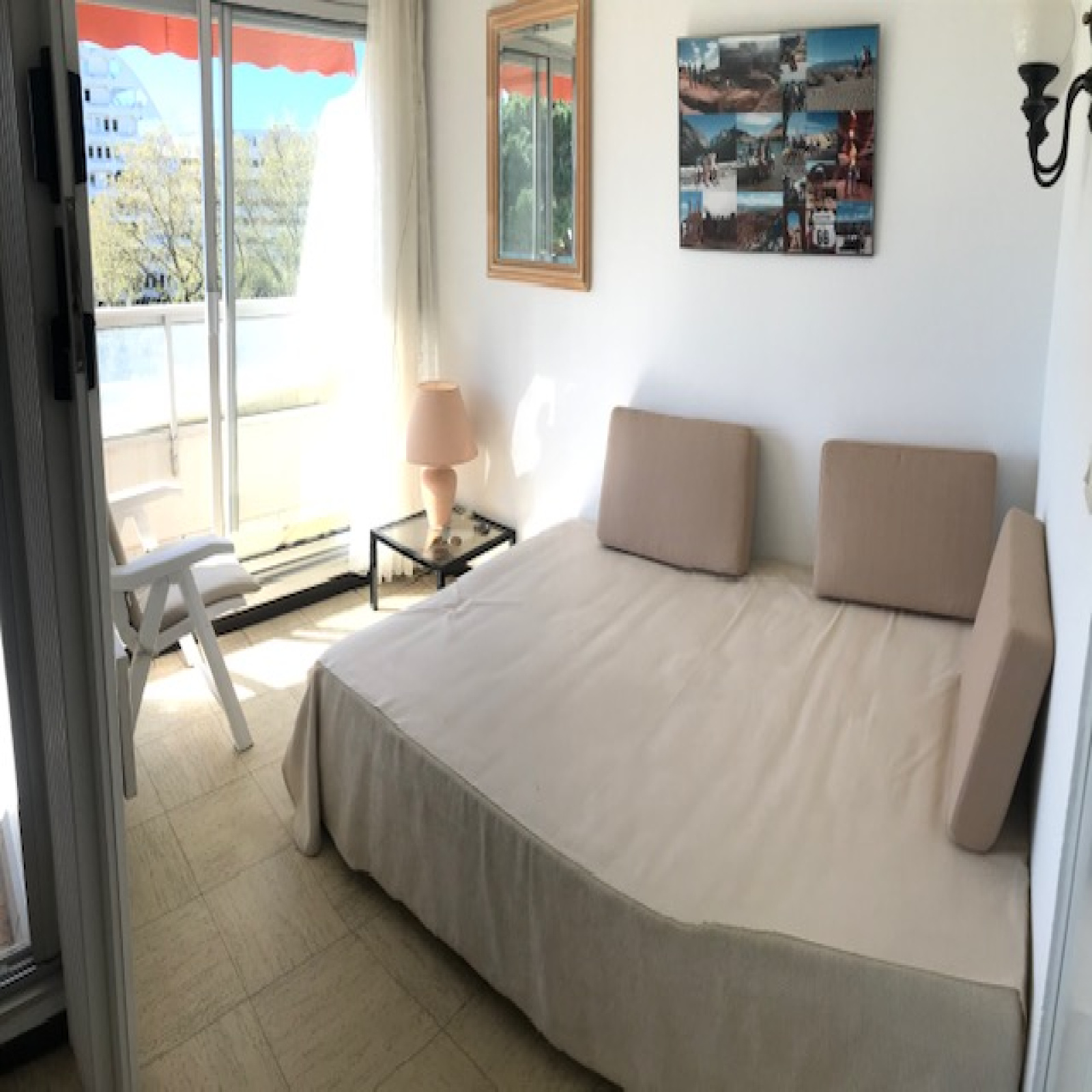 il est composé d'une confortable cabine à l'entrée , salle d'eau et wc séparés, coin cuisine séparé , séjour et chambre donnant sur une loggia orientée sud .